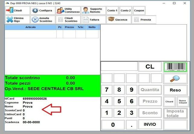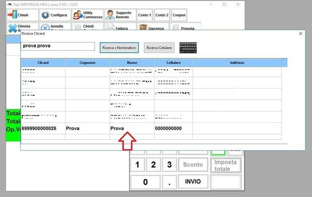 Una volta trovata la FIDELITY CARD della cliente basta fare doppio click sul nome per aggiungerla