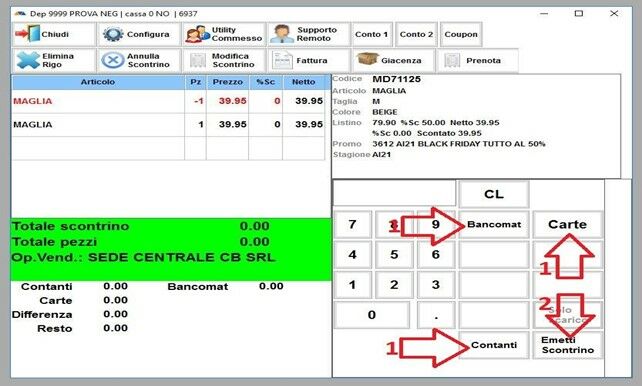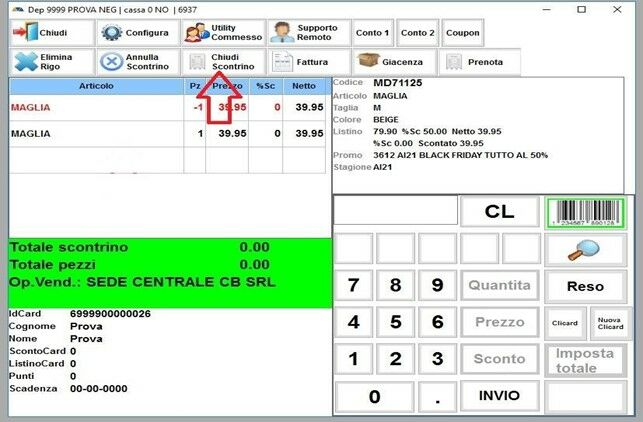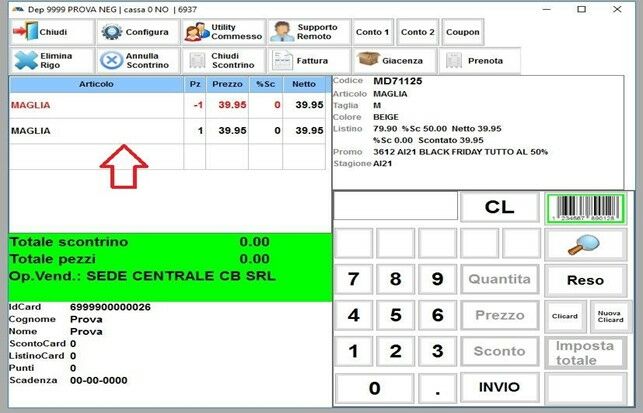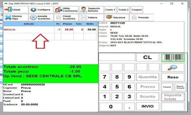 Una volta finito di inserire gli articoli che rende la cliente, aggiungete l’articolo o gli articoli che prende il cambio