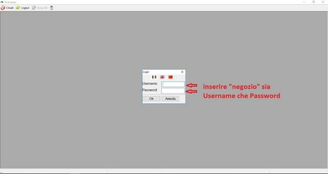 Una volta fatto doppio click sull’icona si aprirà il programma ed andrete ad effettuare il Login inserendo USERNAME E PASSWORD. Le credenziali andranno inserite nell'apposito spazio e saranno strettamente personali. Non cederle a nessuno.