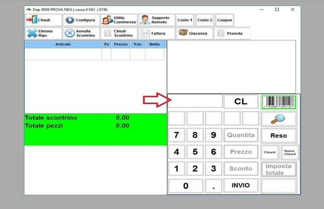 Appena inserite il CODICE COMMESSO verrà visualizzato nel centro della schermata. È importante che venga inserito perché in assenza di questo codice non potrete concludere lo scontrino;