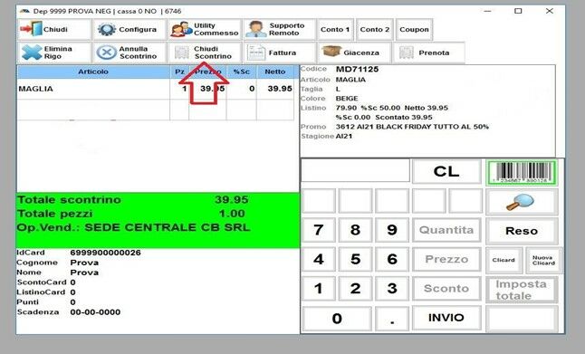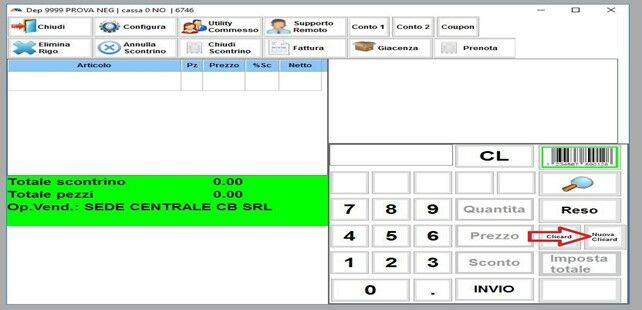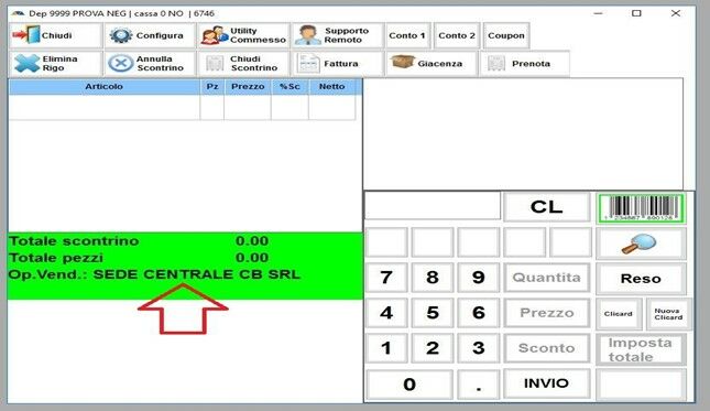Si aprirà la schermata di VENDITA
