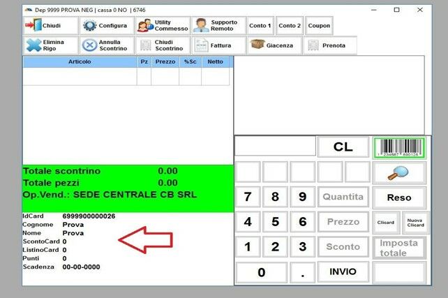 Adesso possiamo procedere con l’inserimento della FIDELITY CARD della cliente, se la cliente è nuova si deve creare una nuova FIDELITY CARD cliccaNDO sul tasto NUOVA CLICARD come indicato nell’immagine.