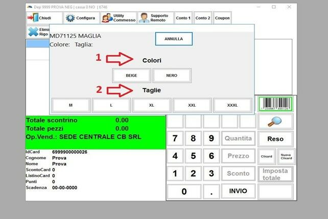 Basterà cliccare sul COLORE e la TAGLIA e si inserirà nella schermata di vendita