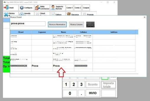 Andremo a selezionare la FIDELITY CARD con un doppio click sul NOME della cliente appena ricercata