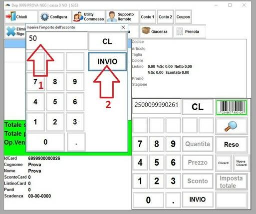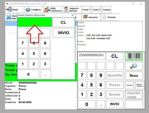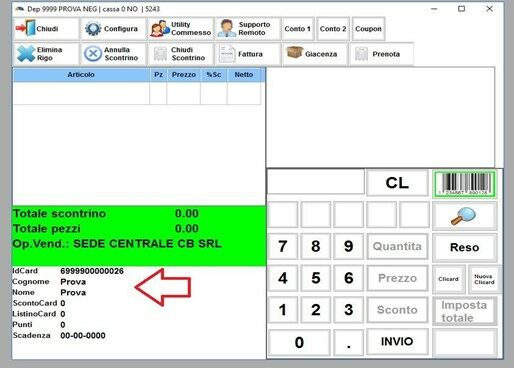 L’inserimento della FIDELITY CARD sarà visibile nella schermata di vendita come nell’immagine seguente