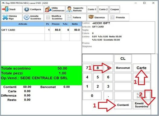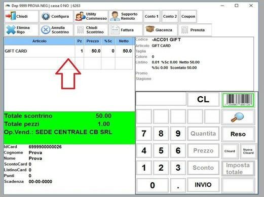 Vi troverete l’articolo GIFT CARD inserito nella schermata di vendita